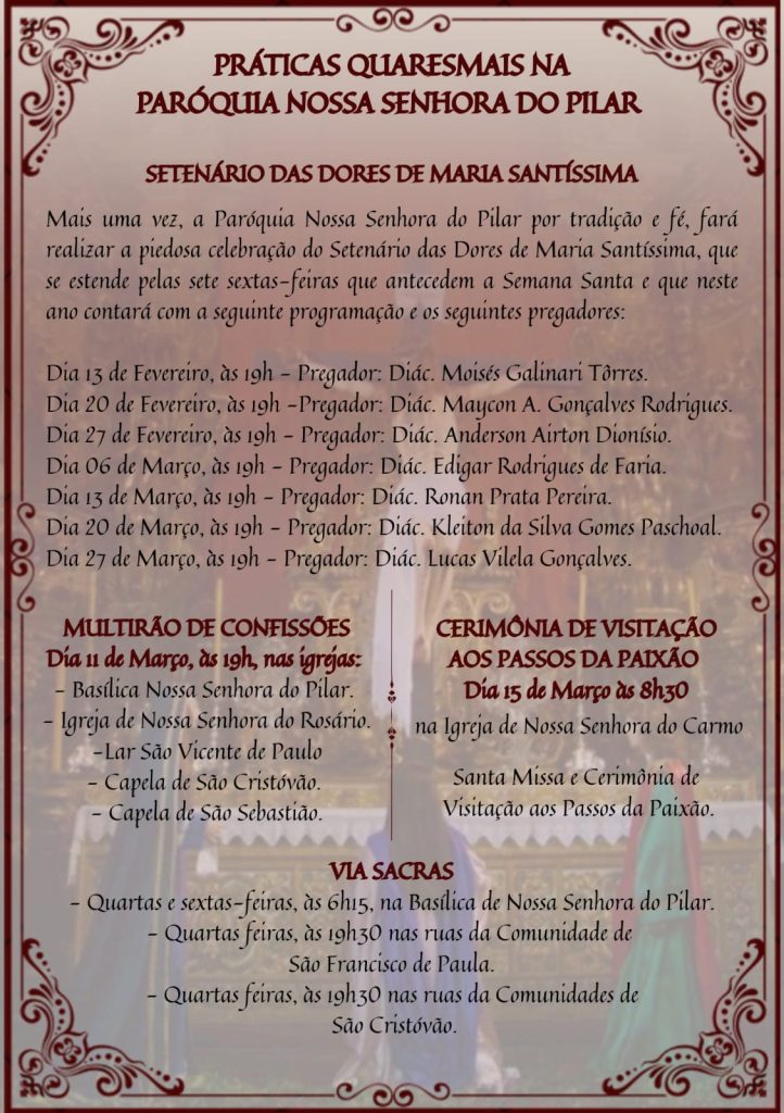 PRÁTICAS QUARESMAIS PARÓQUIA NOSSA SENHORA DO PILAR